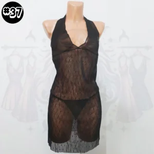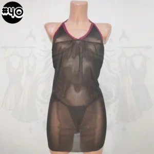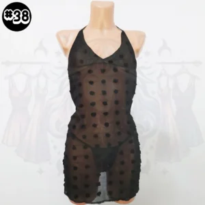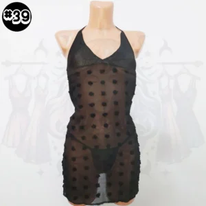 قميص شوميز اسود منقط و سترينك – Chemise de nuit Noir