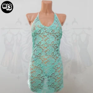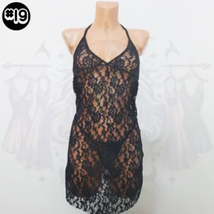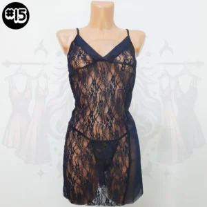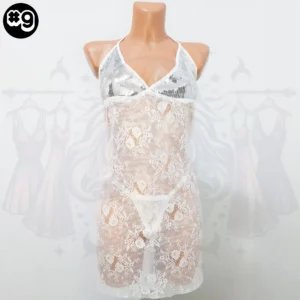 بيبي دول على شكل قميص نوم شوميز و سليب داخلي جي-سترينغ لون ابيض تيل و دونتيل، مجموعة لانجري تتكون من قميص نوم فضفاض قصير