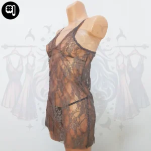 بيبي دول على شكل قميص نوم شوميز و سليب داخلي جي-سترينغ لون احمر غامق دونتيل، مجموعة لانجري تتكون من قميص نوم فضفاض قصير