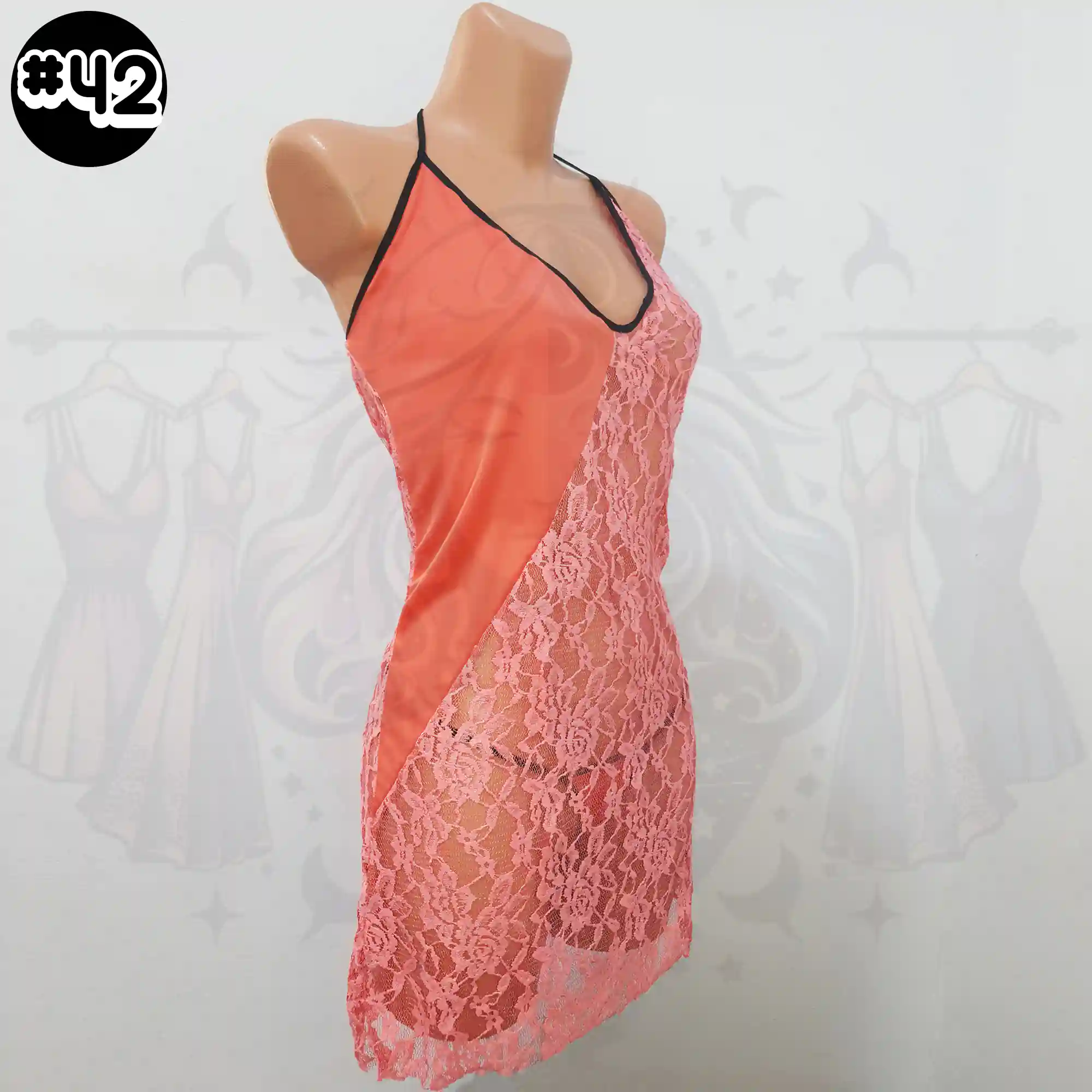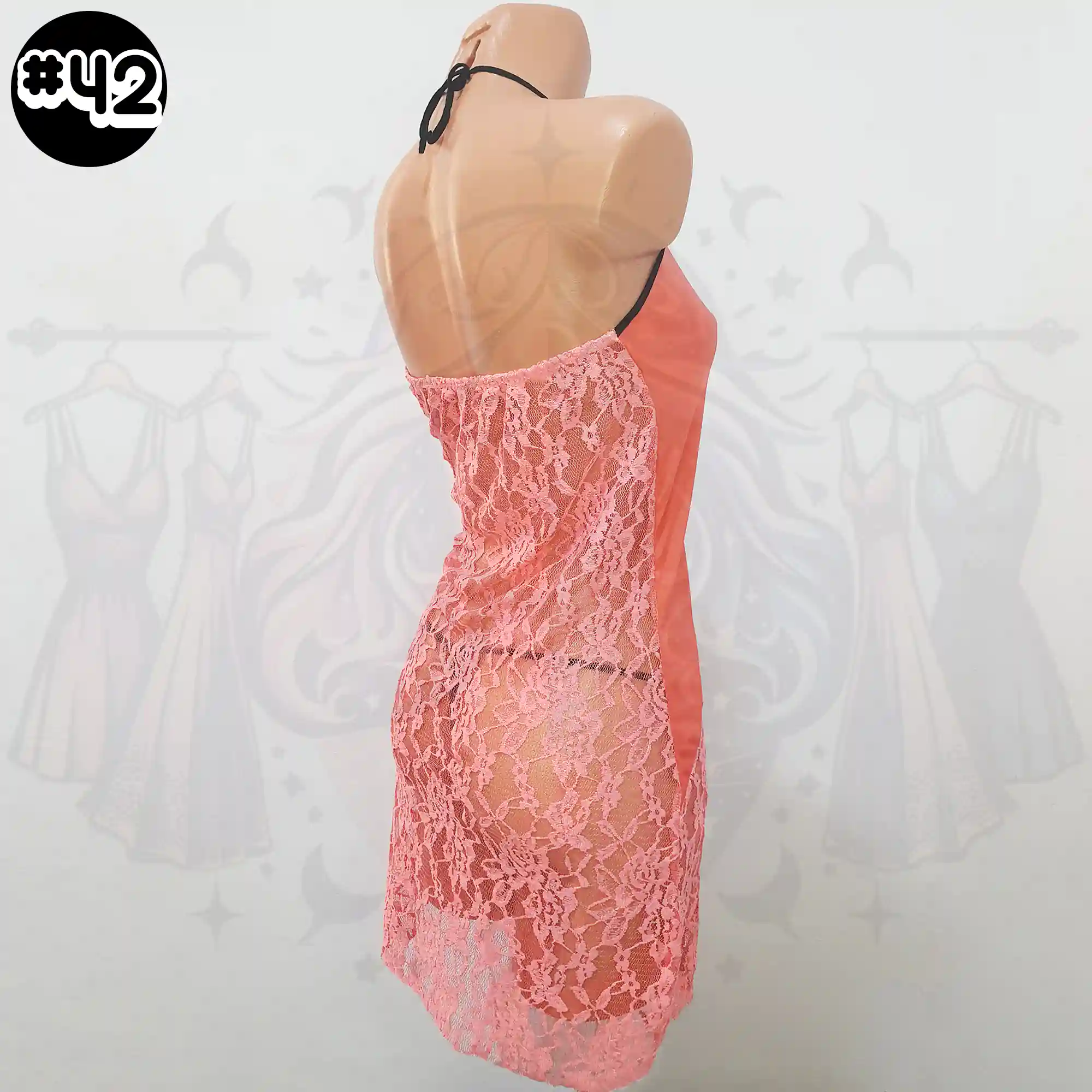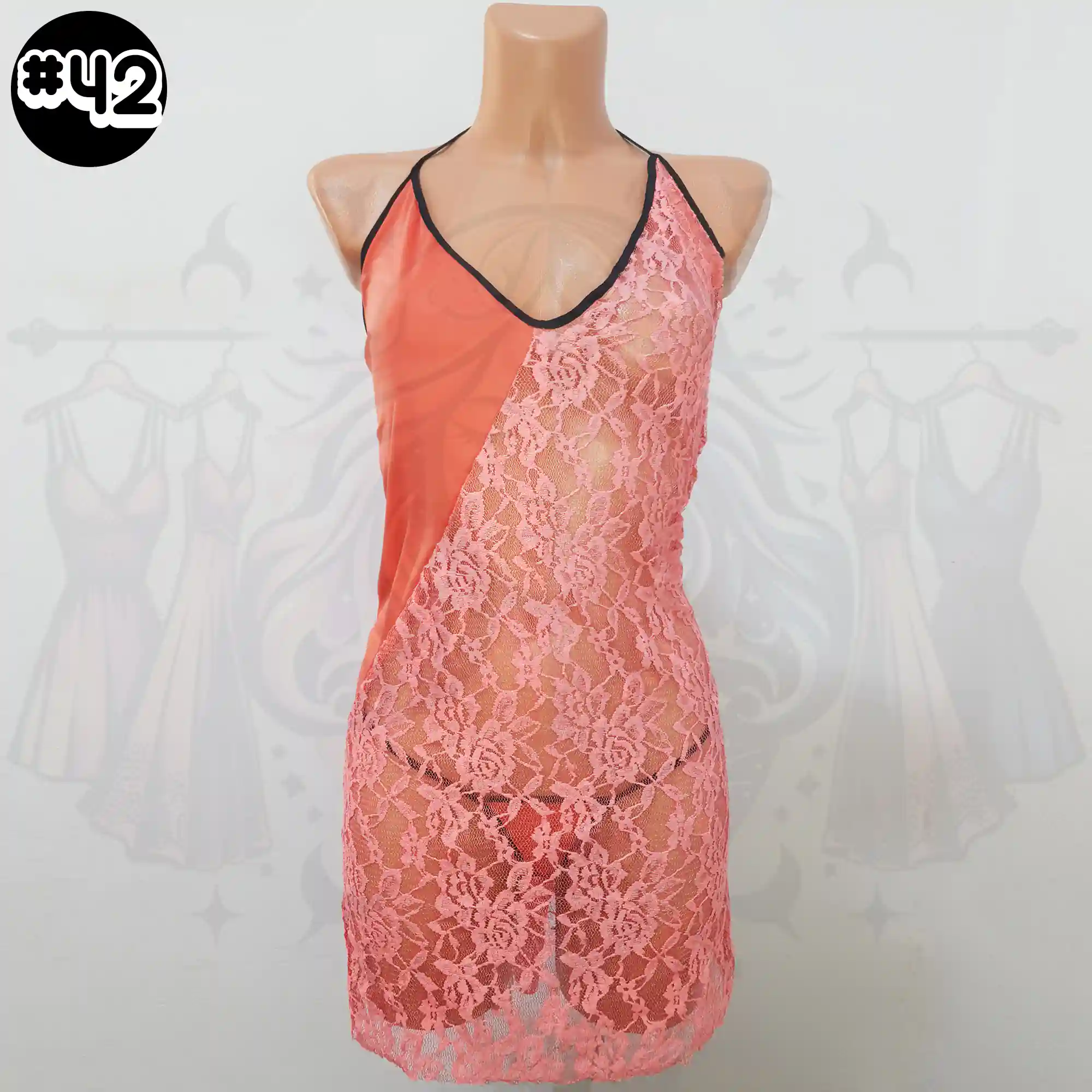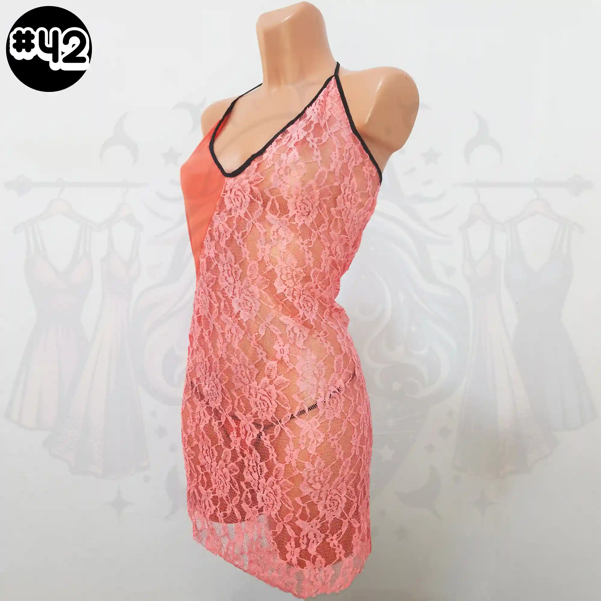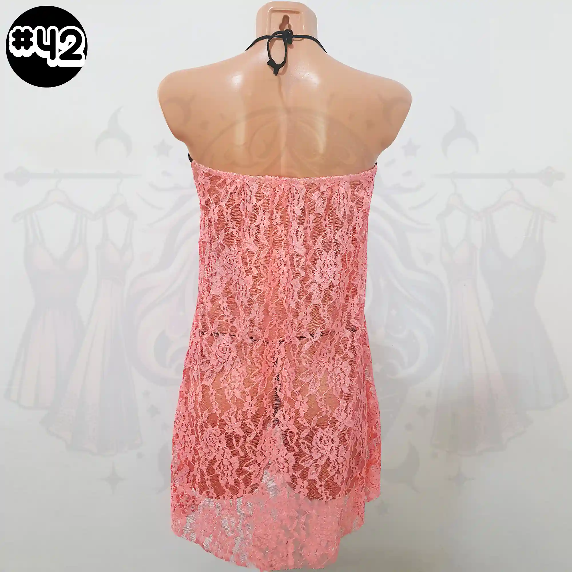 بيبي دول على شكل قميص نوم شوميز و سليب داخلي جي-سترينغ لون وردي دونتيل، مجموعة لانجري تتكون من قميص نوم فضفاض قصير